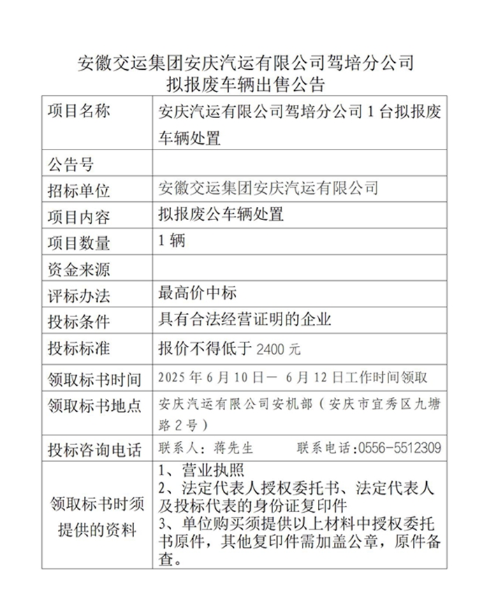駕培分公司擬報(bào)廢車(chē)輛出售公告