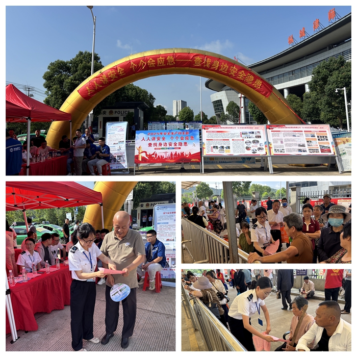 活動現(xiàn)場,工作人員各司其職,通過多種形式全方位、多角度地開展安全知識宣傳。一張張色彩鮮艷的安全月宣傳海報張貼在顯眼位置,一條條醒目的標(biāo)語和橫幅隨風(fēng)飄動,一塊塊內(nèi)容豐富的宣傳展板整齊排列,再加上精心設(shè)置的咨詢臺,共同營造出濃厚的安全宣傳氛圍。活動緊緊圍繞“人人講安全、個個會應(yīng)急—查找身邊安全隱患”這一主題,向過往的乘客和市民傳遞著安全生產(chǎn)月的重要知識。
