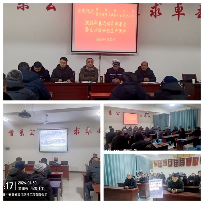 為保障春運(yùn)期間道路運(yùn)輸安全,1月30日晚,望江城市(城鄉(xiāng))公交分公司召開2026年春運(yùn)動員部署會暨元月份安全生產(chǎn)例會。望江縣道路運(yùn)輸管理服務(wù)中心、縣交警大隊蒞臨指導(dǎo)會議?紤]到鄉(xiāng)鎮(zhèn)駐點(diǎn)駕駛員的實(shí)際,會議創(chuàng)新采用微信視頻群聊方式,確保了全司60余名駕駛?cè)、安全員等“面對面”參會,實(shí)現(xiàn)培訓(xùn)全面覆蓋。